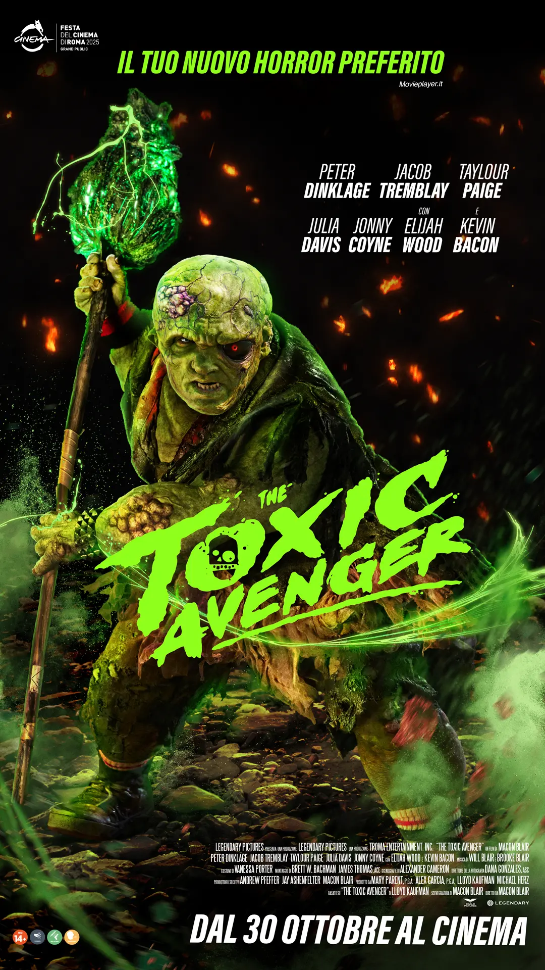 Attori: Peter Dinklage - Winston Gooze / the Toxic Avenger, Jacob Tremblay - Wade, Taylour Paige - J.J. Doherty, Kevin Bacon - Bob Garbinger, Elijah Wood - Fritz Garbinger, Sarah Niles - Mayor Togar, Julia Davis - Kissy Sturnevan, Julian Kostov - Budd Berserk, Jonny Coyne - Thad Barkabus, Shaun Dooley - Melvin Ferd, Annette Badland - Daisy