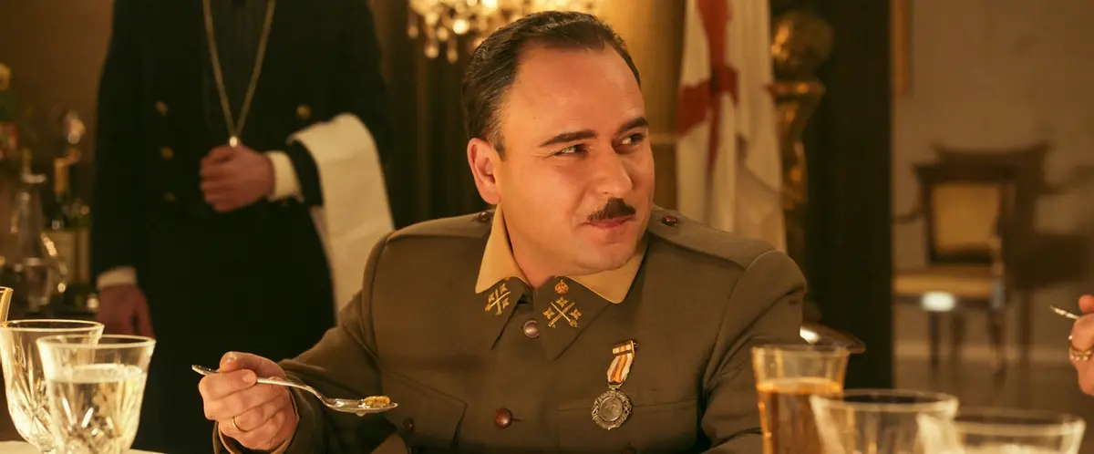 Tratto dalla commedia teatrale La cena de los generales di José Luis Alonso de Santos (adattata dal regista con Joaquín Oristrell e Yolanda García Serrano), A cena con il dittatore occhieggia al capolavoro Vogliamo vivere! di Ernst Lubitsch e gioca con un côté fumettistico che fa rima con le vignette coeve del Marc’Aurelio italiano (giornale satirico da cui, guarda un po’, uscì il gotha del cinema italiano, da Federico Fellini ad Ettore Scola passando per Cesare Zavattini e Age & Scarpelli) e, al contempo, mantiene un atteggiamento serio: è una commedia, certo, ma dove i fascisti non si fanno scrupoli ad ammazzare a sangue freddo chi non la pensa come loro.