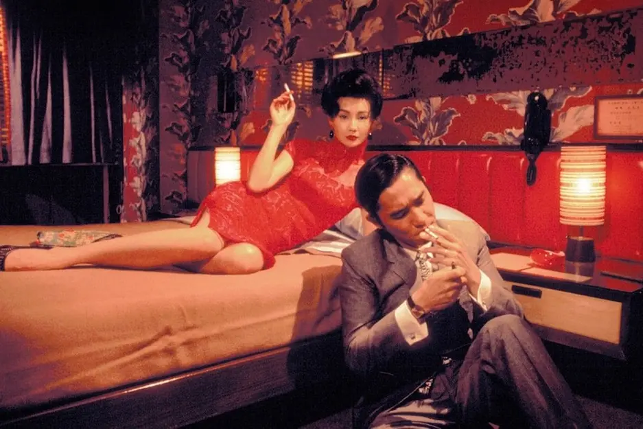 Vengono in mente maestri di stile visivo e dei sentimenti come Antonioni, Resnais e Bertolucci; si manifesta la calma fluida e contemplativa delle atmosfere wendersiane; prendono vita le cromature almodovariane del desiderio… ma tutto con una mano registica personalissima portata all’apice dall’interpretazione dei due straordinari protagonisti: Tony Leung (Chow) e Maggie Cheung (Su-lin). Non si vedono molti altri personaggi in questa storia, un passo a due dove persino le ombre, le rifrazioni “speculari”, i particolari fisici o i dettagli di cose, compongono un tableau vivant in cui la cinepresa però è sempre in movimento, a sfiorare muri, cose e corpi, realizzando inquadrature degne dell’arte pittorica.