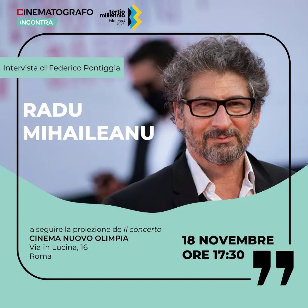 Sabato 15 novembre, alle ore 17:30, al Cinema Nuovo Olimpia di Roma, Radu Mihaileanu, presidente di giuria della XXVII edizione del Tertio Millennio Film Fest, sarà presente in sala per una masterclass, nell’ambito del format “Cinematografo Incontra” (per partecipare scrivere a festival@tertiomillenniofilmfest.org), che precederà la cerimonia di premiazione e la proiezione del film Il concerto (clicca qui per acquistare il biglietto). Tutte le info qui.