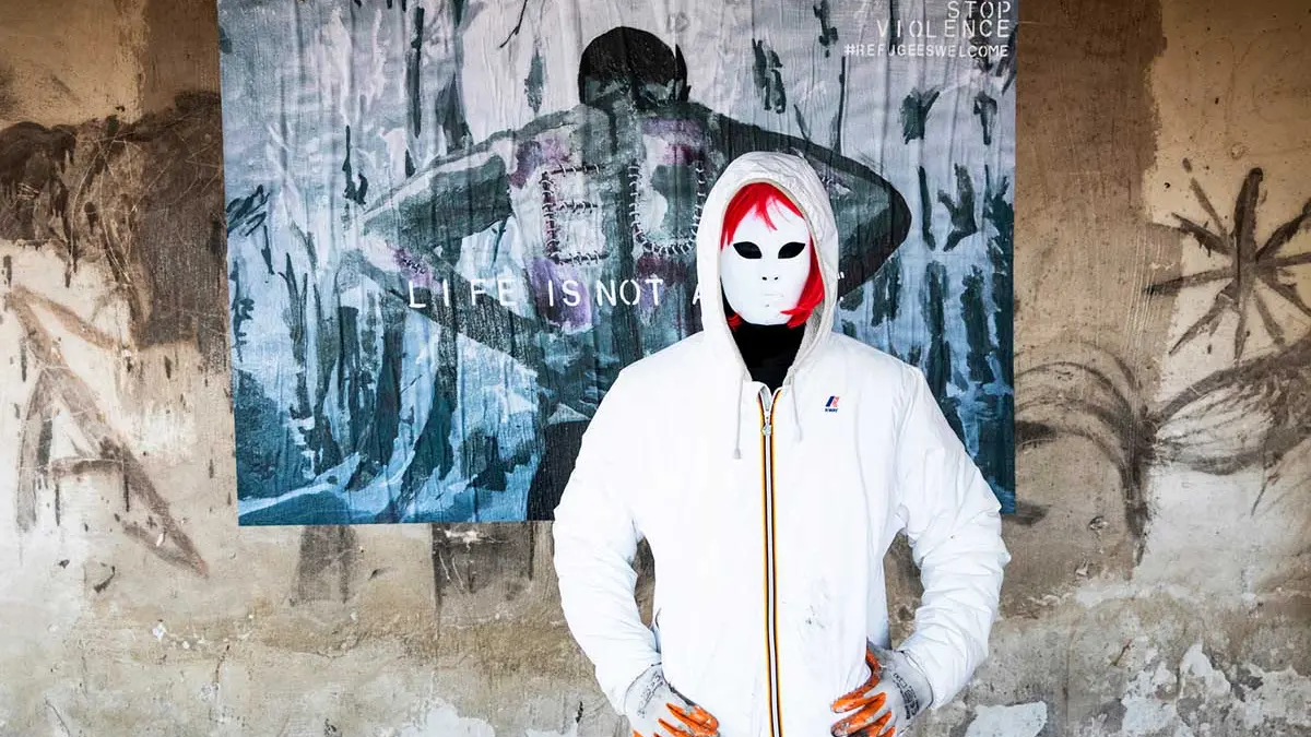 Maschera bianca da manichino, parrucca rosso fuoco, voce camuffata dal distorsore: Laika (come la cagnetta che fu lanciata nello spazio sullo Sputnik sovietico) ha animato i muri di Roma negli ultimi anni pandemici con poster e murales che urlano la sua indignazione civile (il più noto è quello che immagina un abbraccio tra Giulio Regeni e Patrick Zaki).